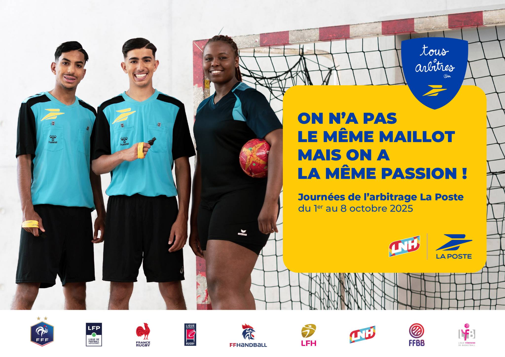 Chaque année, La Poste active un protocole spécifique Journées de l’arbitrage sur l’ensemble des championnats professionnels masculins et féminins des sports partenaires (foot, hand, rugby, basket). Parmi toutes ces rencontres, au moins 13 (une par région) sont qualifiées de match renforcé avec un dispositif spécifique :