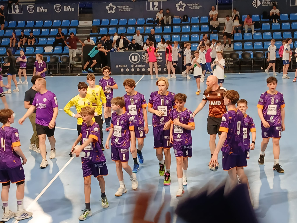 La demi-finale nous oppose à l’équipe locale de Montpellier. Assez confiants, nous connaissons pourtant une entame compliquée : un arbitrage maison, plus que controversé, ne permet pas à nos joueurs d’évoluer sereinement. Malgré cela, et même menés de 4 buts, Sélestat repasse devant à la fin de la première période (11-12).