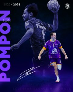 Le Sélestat Alsace Handball est très heureux d’annoncer la signature du premier contrat professionnel de son jeune ailier, Tom POMPON, pour les deux prochaines saisons.